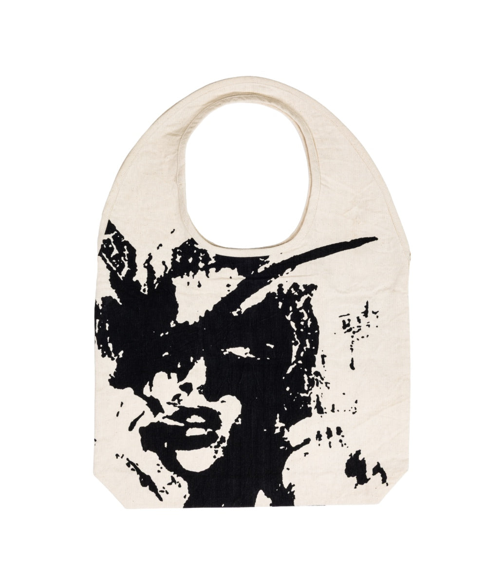 Den naturvita bomullen blir en harmonisk bas till det svarta konsttrycket, som bär Gynnings karaktäristiska energi och uttrycksfullhet. På insidan finns en liten ficka med dragkedja för mobil, nycklar eller andra små tillhörigheter – en genomtänkt detalj som gör väskan både snygg och praktisk.